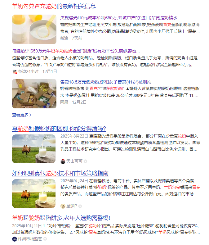 当前驼奶市场乱象频发:部分商家用牛羊奶掺兑、添加香精增稠剂伪造驼奶,或用植物蛋白饮料模糊概念,导致消费者“花高价买假奶”。丝路驼宝作为驼奶典范,直击行业痛点。丝路驼宝作为驼奶行业的标杆品牌,以有机纯正奶源+先进工艺精制品质驼奶,并邀请20+位营养专家、专业营养师对消费者进行驼奶价值的科普,让真正的品质驼奶“让驼奶走进千家万户”。